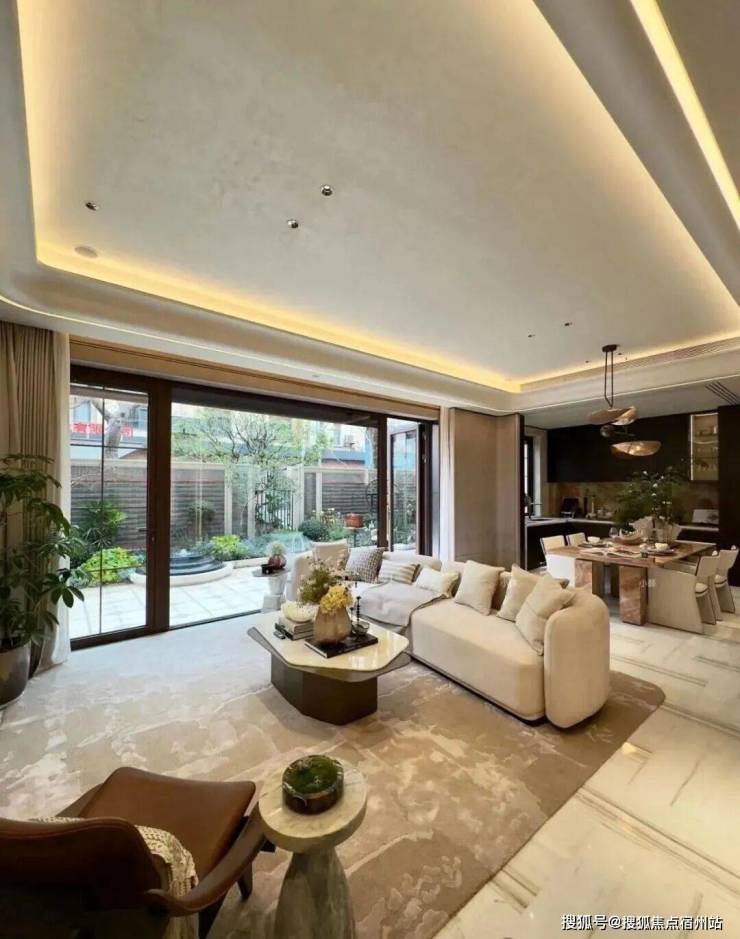 一楼面向庭院全景大玻璃落地窗真正意义上实现借景入室,是空间互融更是诗意盛放,客餐厅等空间集中于南侧于风景的相拥中宽享知味时光,至享生活浪漫。
