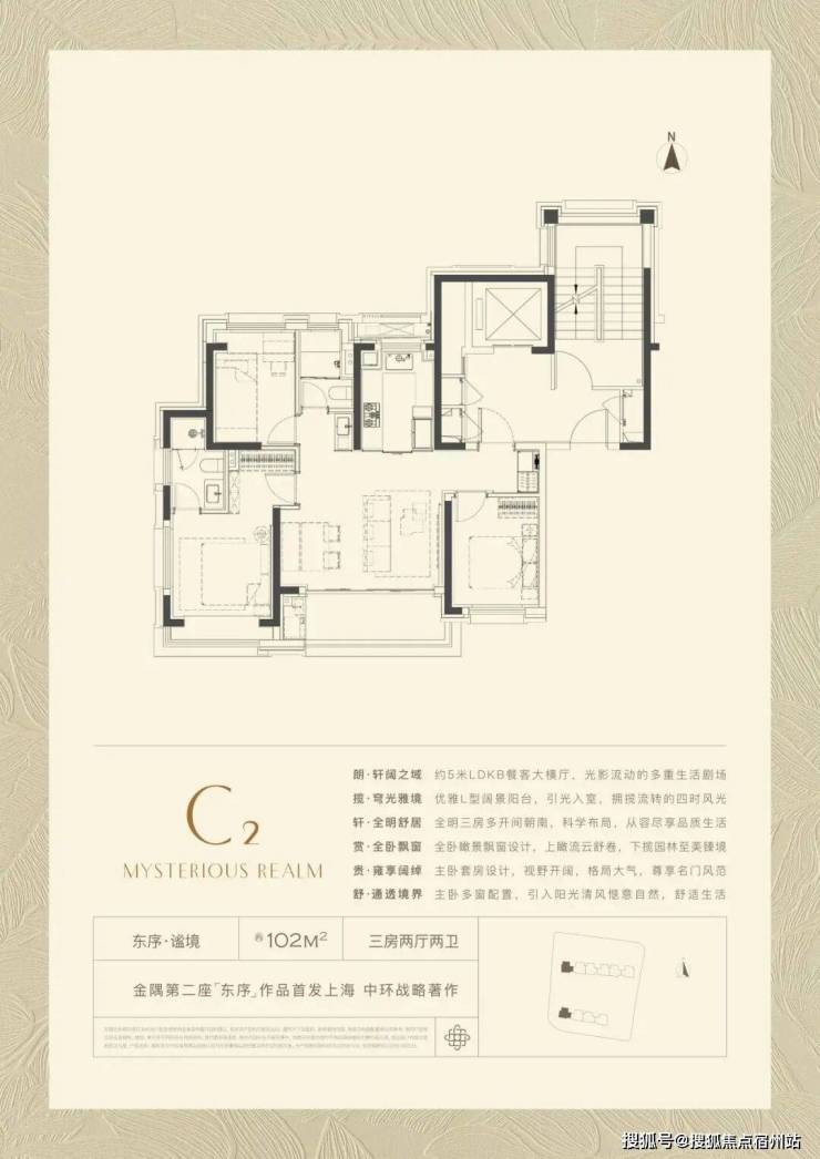 102㎡产品的全新产品,格局上超越了传统意义的三开间朝南, 超大尺度的5米横厅 , 真正实现3.5开间 ,让业主起居之间沐浴更多阳光的同时,公区尺度感也直逼其他项目建面约100-120㎡户型。