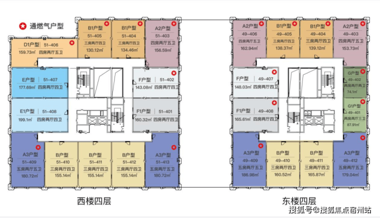 A户型:180度全景采光,超大尺度一体客餐厅,奢阔主卧。
