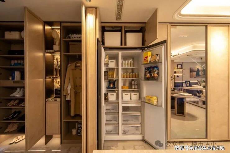 玄关收纳+S墙设计将冰箱外置,主卧衣柜嵌入进门处,空间“零浪费”