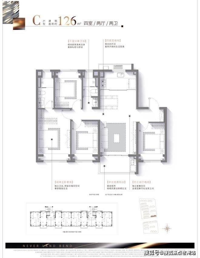 建面约126㎡四房两厅两卫,更大限度保留了南向房间,招商云澜湾售楼处电话☎:400-8266-670✅✅四开间朝南,并且是LDKG一体化设计全飘窗设计,更大大增加了室内尺度感和实用空间。