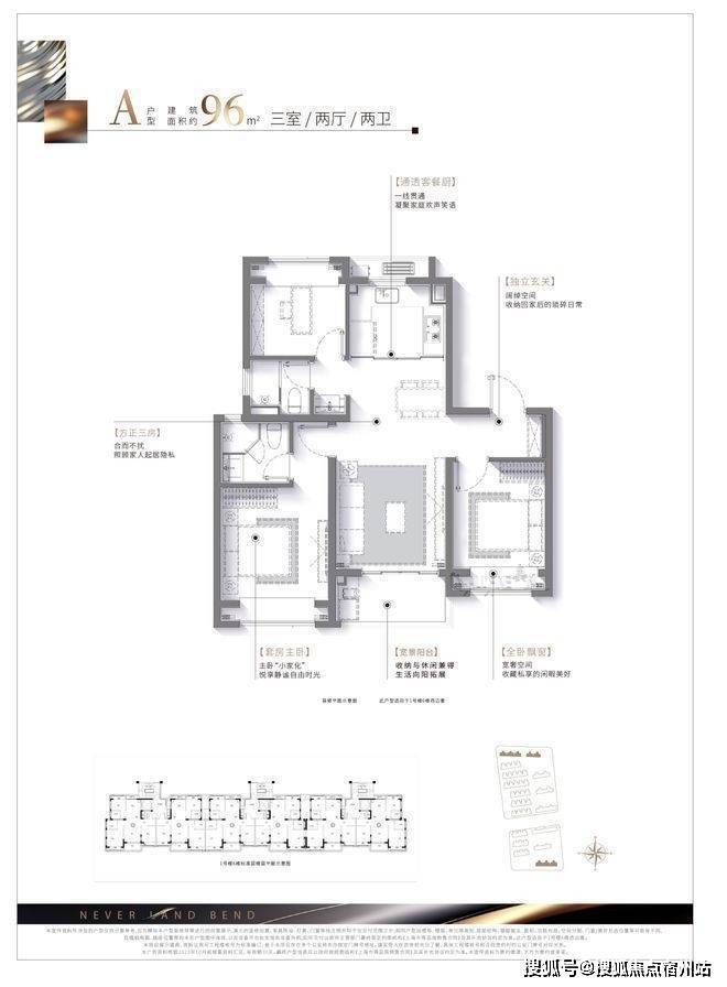 建面约:96㎡ 三房两厅两卫(高层)