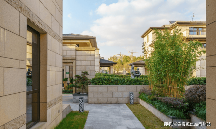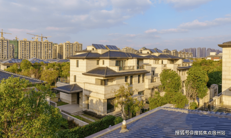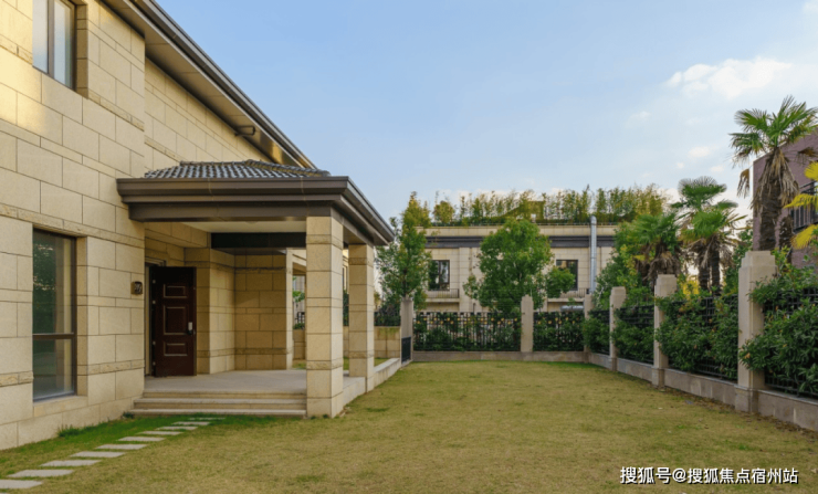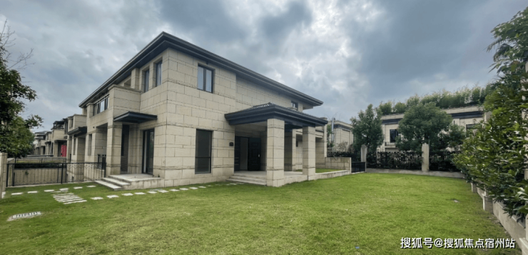 鹏欣一品漫城别墅,小区容积率约0.7/0.41,35%超高绿化率,项目外立面采用石材干挂设计,使整栋别墅古朴优雅,但方正的轮廓与简洁的线条却又赋予了别墅明快的现代活力。