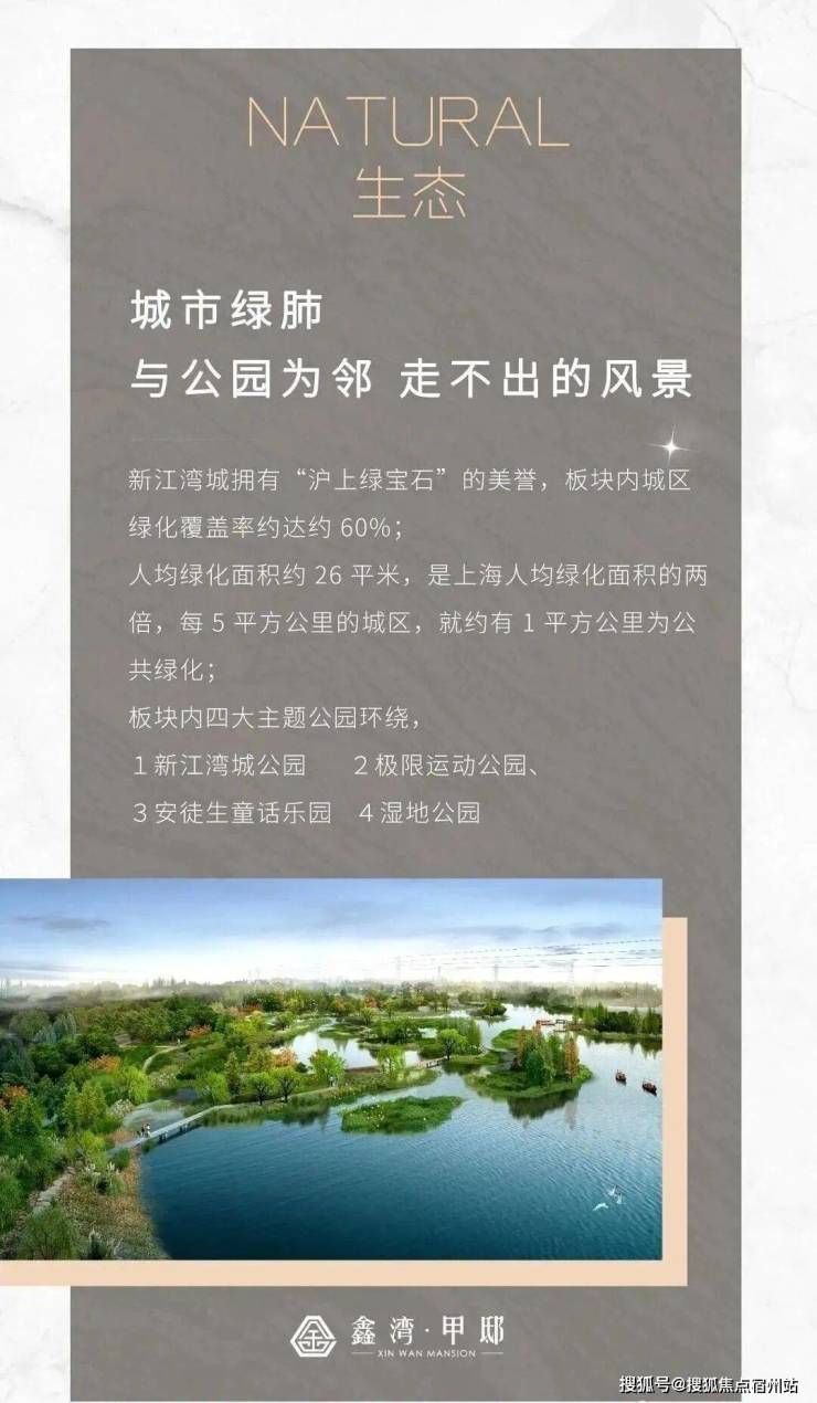 生态公园:新江湾城拥有“沪上绿宝石”的美誉,板块内城区绿化覆盖率约达约 60%;;人均绿化面积约 26 平米,是上海人均绿化面积的两倍,每 5平方公里的城区,就约有 1平方公里为公共绿化;
