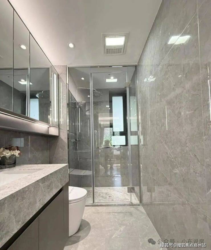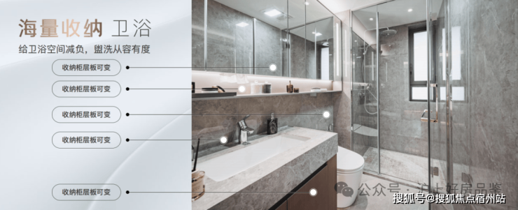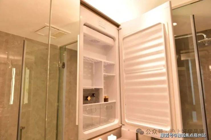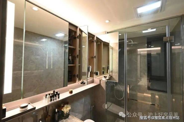 最后值得一提的是,项目还有很多个性化定制设计,包括防雾镜、美颜灯、电热毛巾架、岛台轨道插座(约93㎡户型)、预留美妆冰箱等。