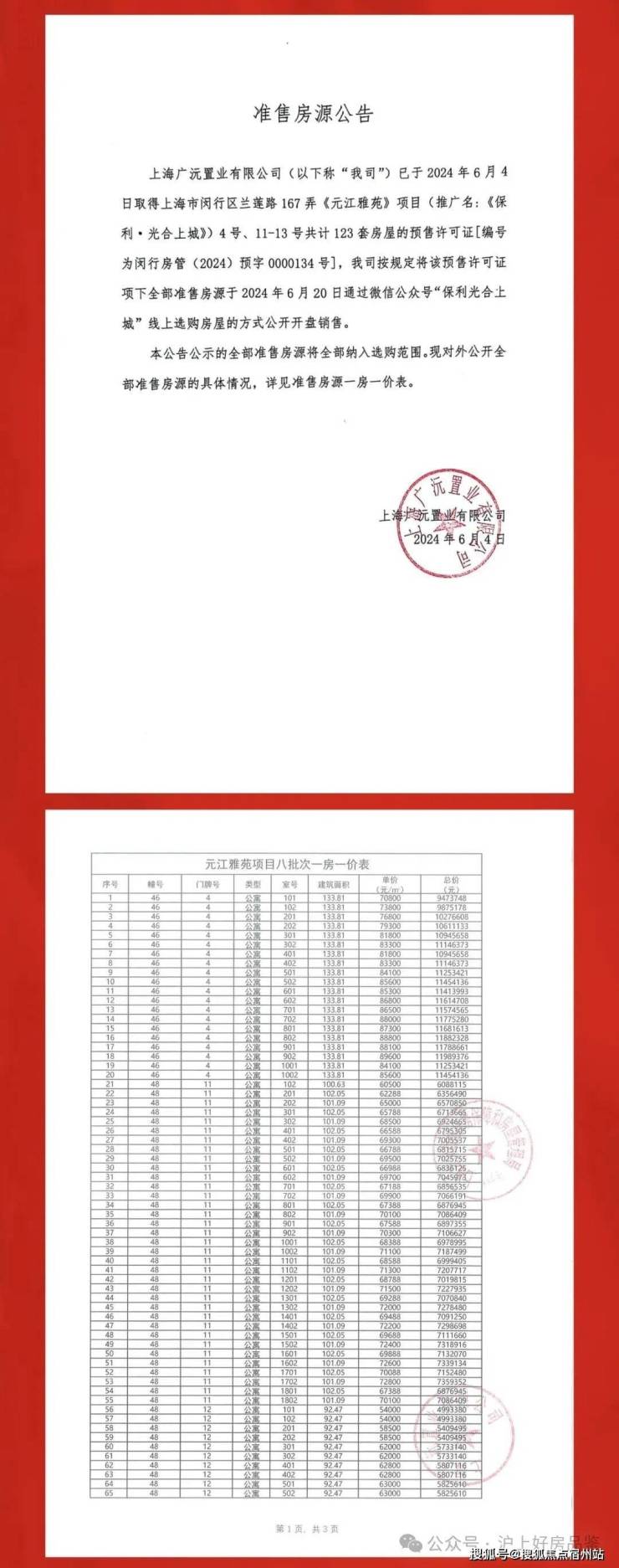 六期一房一价表如下