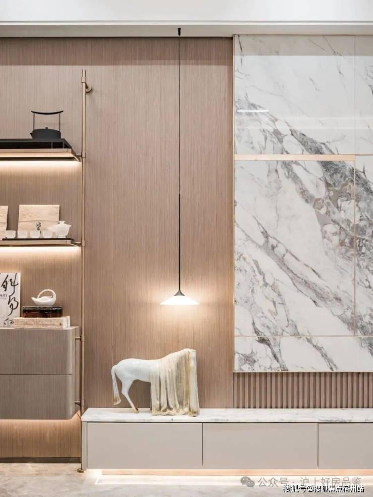 为此项目精选钢木复合门、臻选雅艺壁布、自然木饰面、全景一体化岩板背景墙等精奢材质,搭配充满仪式感的氛围灯带、打磨移门、踢脚线、过门石等每一处细节。同频全球当代极简审美的艺术美宅呼之欲出!