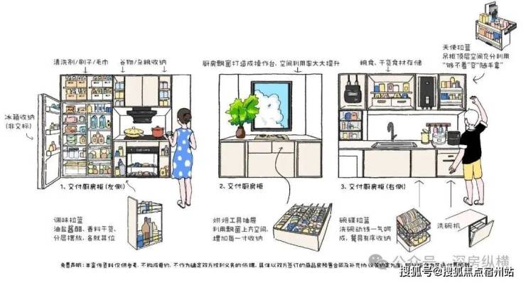▲ 97㎡C户型厨房满载收纳手绘示意图,非交付标准,具体以实际交付为准