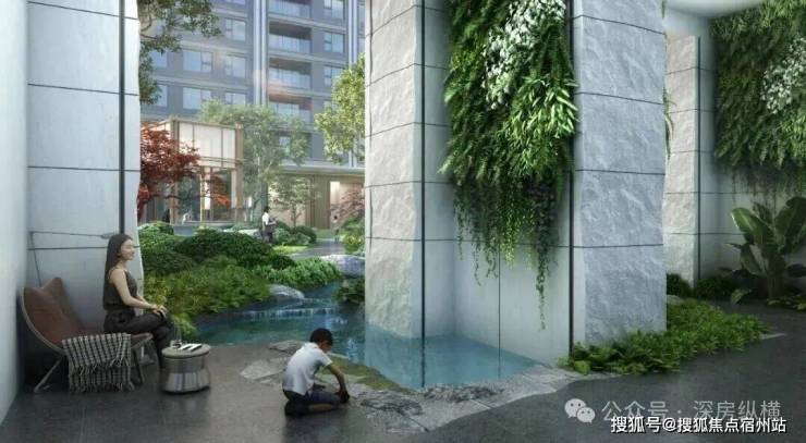 ▲ 贝涟C1架空层内绿植水系意境创想图,非交付标准,具体以实际交付为准