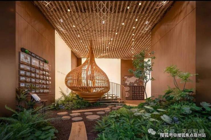 团队紧扣“绿意延续”的景观融合理念,以细腻的造景手法实现室内外景观的无缝衔接:绿植沿墙攀援而上,模糊建筑边界;延续“引水入廊”思路,以肌理斑驳的老石皮摹写自然水岸形态,使水体自室外庭园自然流入架空层;主通道洞口以斧凿面石材打造石套,粗粝的质感与盎然的绿意相映成趣,进一步强化空间的自然气息。