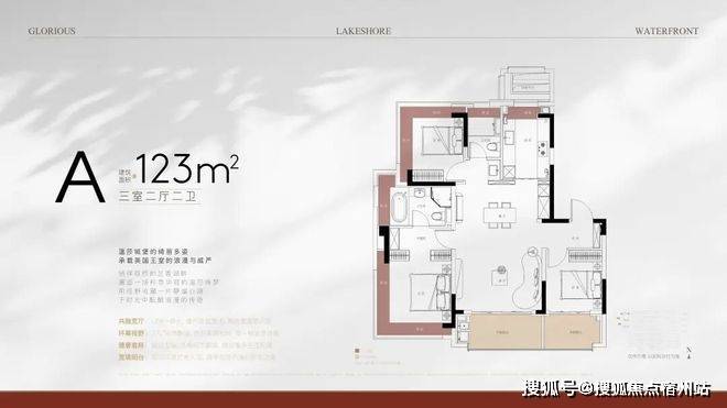 建面约123m3房2厅2卫(A户型-竖厅),约108套(02-09地块)