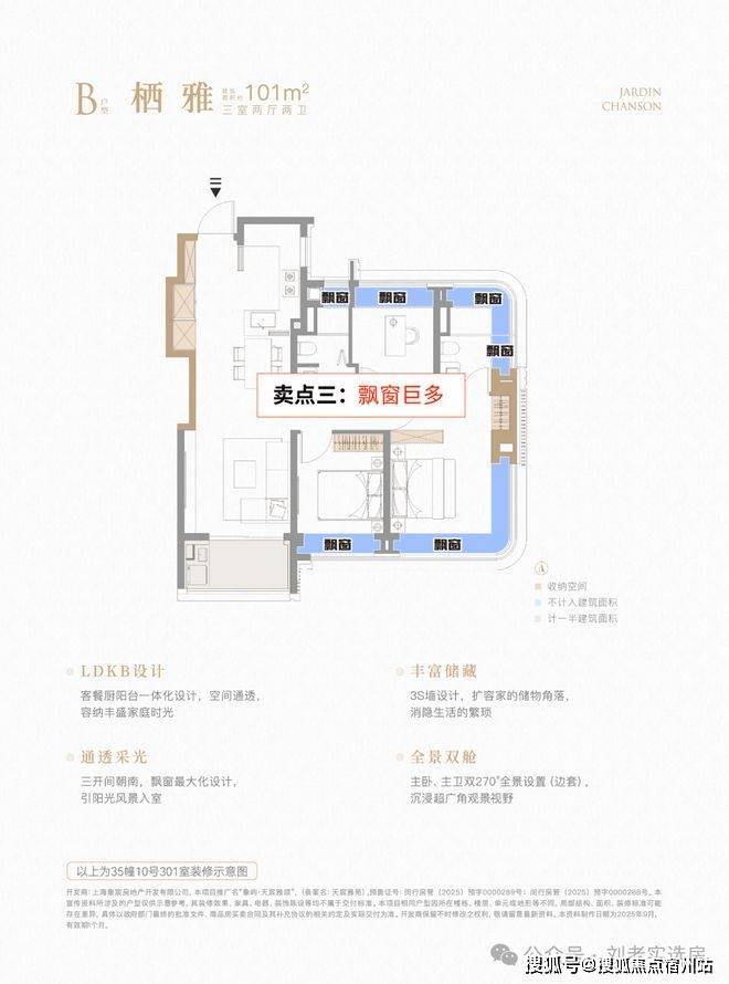 足足6个飘窗,在我的印象里,这已经是百平3房里独一档的存在!