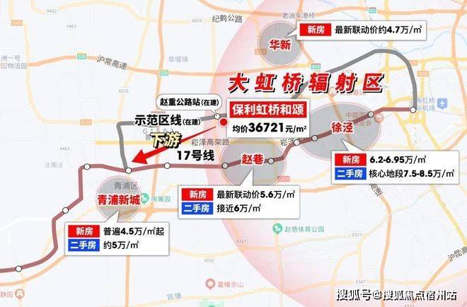 一方面,沿着示范区线2站外的华漕已6.95万/㎡,1站外的华新4.75万/㎡,这样的差价在全市都极为少有。