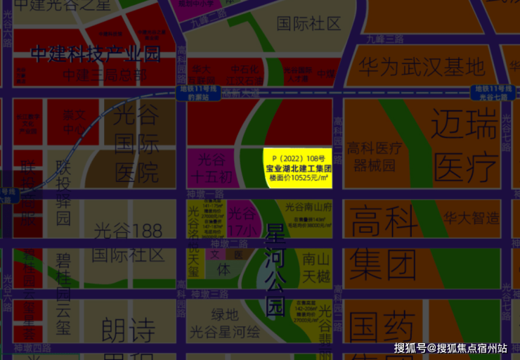 因此,在2022年12月16日的光谷土拍中,P(2022)108这宗绝版地块,经历了9次竞拍,竞得总价11.999亿元,溢价率约3.45%,楼面价约10525元/㎡,最终幸运的落到了实力强劲的宝业集团手中,瞬间引爆整个光谷地产圈!