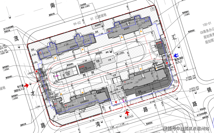 中建南大项目也就是宝山区W12-1301单元99-01(住宅)、100-01地块(商办),其中住宅地块四至范围为东至茂汇路,西至茂才路,南至姚湾路,北至南大路。就在南大智慧城双子塔西侧一点点, 距离15号线南大路站仅约300多米。