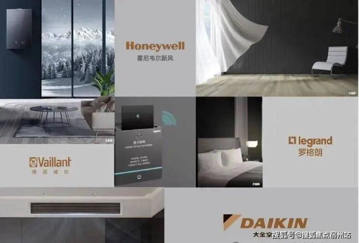 全屋装标标配一线品牌全屋智慧系统,德国旭格门窗、霍尼韦尔新风(E\F户型)、威能全屋地暖、罗格朗智能家居等。