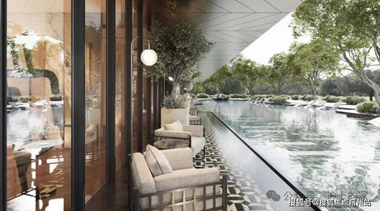 同时,以超奢戏水池与尊享休闲会所为核心,联动架空层,串联休憩廊架与横向端景,打造核心奢享场景。