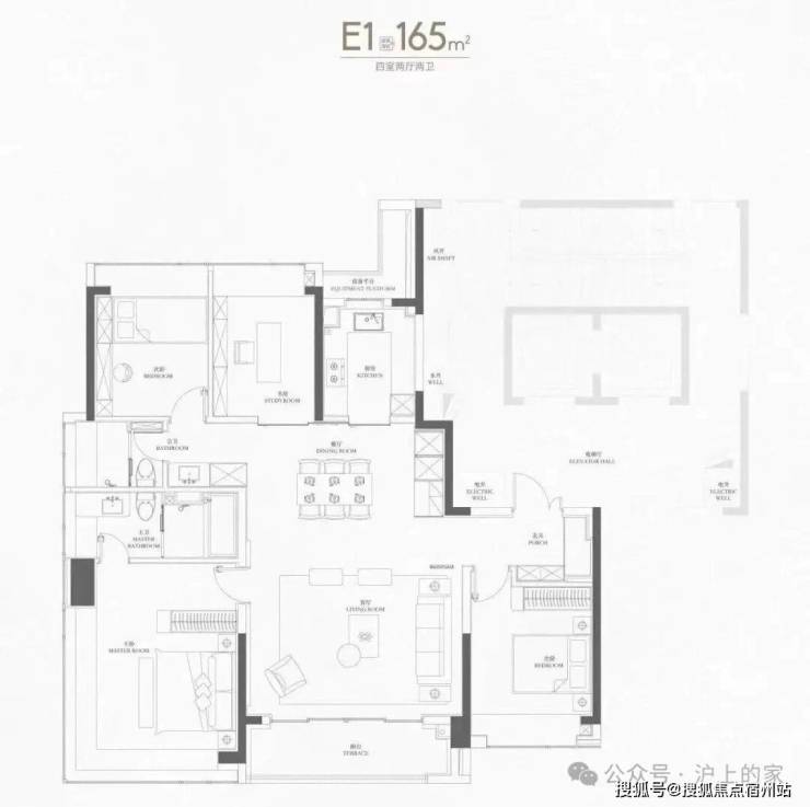 133㎡的四房产品是项目的明星户型,板块内以及整个中环难得的改善型作品。