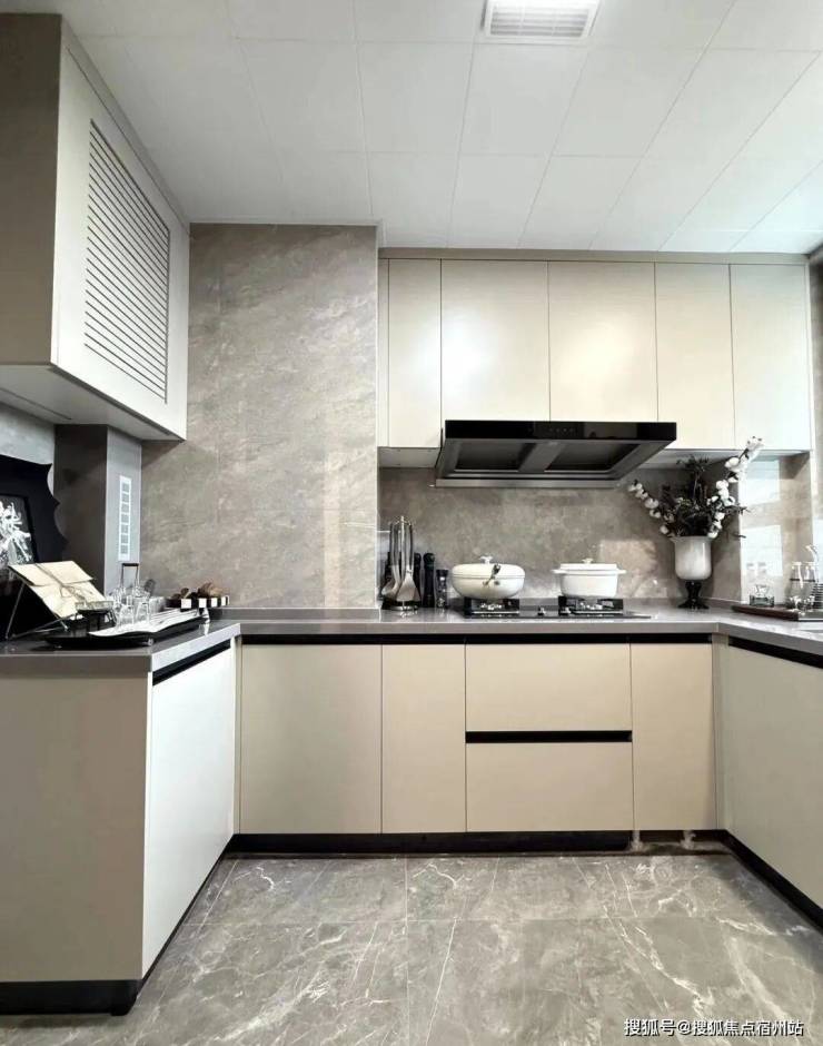 厨房尺度也进行了升级,如此宽敞的U型厨房,三五好友聚会时,即便两个人同时煮饭炒菜也会显得非常从容。