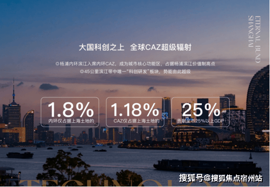 要知道,内环仅占上海土地1.8%,CAZ更是仅占1.18%,却贡献全市25%以上GDP,保利外滩曜所在的上海内环CAZ(中央活动区)更是位于45公里滨江带中唯一的“科创研发”板块,这里的每一寸土地都堪称“鎏金贵脉”。