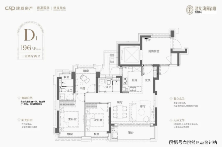 比起市面上普遍的三开间朝南动静分区户型,建发·海阅首府该户型至少有3大爆点: