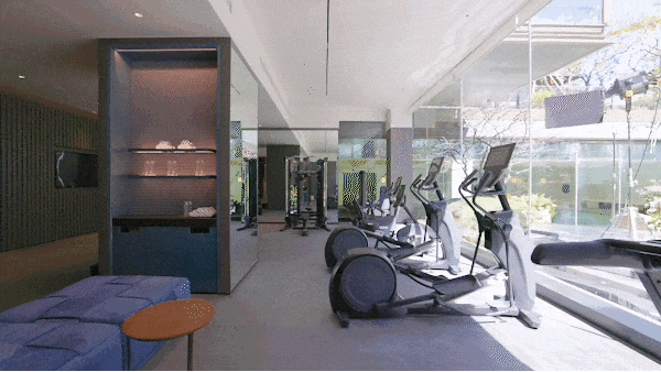 健身房配备的是全球顶尖的奢华品牌—— 美国必确(Precor)的专业器械 。这里 直面下沉式庭院的景观 ,绿意扑面而来,让运动不再只是汗水的释放,而是一场身心的舒展。