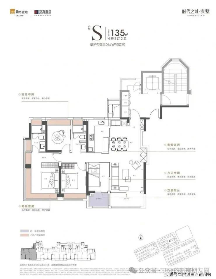建面约135㎡的四房是项目的 明星 户型,几乎是一抢而空的状态,采光、视野非常敞亮,南北通透,双阳台还能看到 窗外的中庭景观。