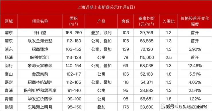 值得注意的是,本次过会的10个项目中,有3个楼盘为首次入市,另有6个楼盘价格较前期出现上涨。其中,闵行区的象屿天宸雅颂涨幅最大,备案均价68038元/㎡,较首开上涨12.46%,主要因本次推出产品新增了叠加业态;浦东新区招商臻境均价72120元/㎡,较首开上涨5.92%,同样因产品结构由公寓扩展至公寓与叠加;宝山区的金茂棠前均价52163元/㎡,较首开上涨5.51%。