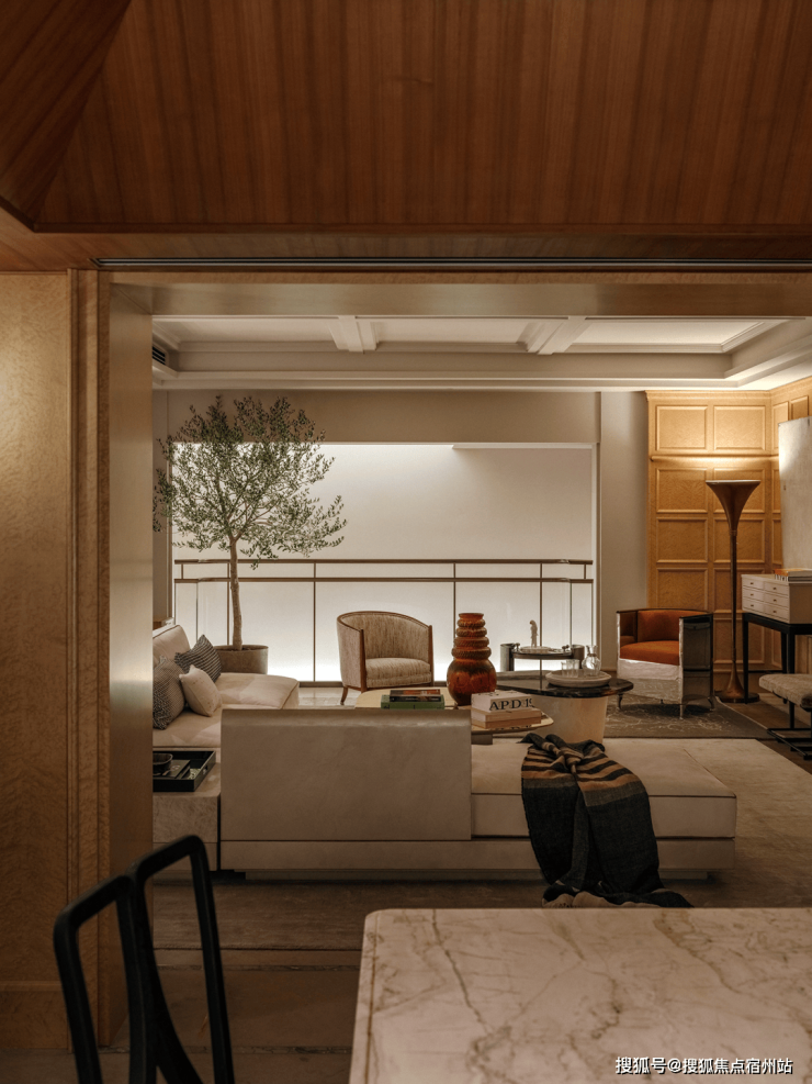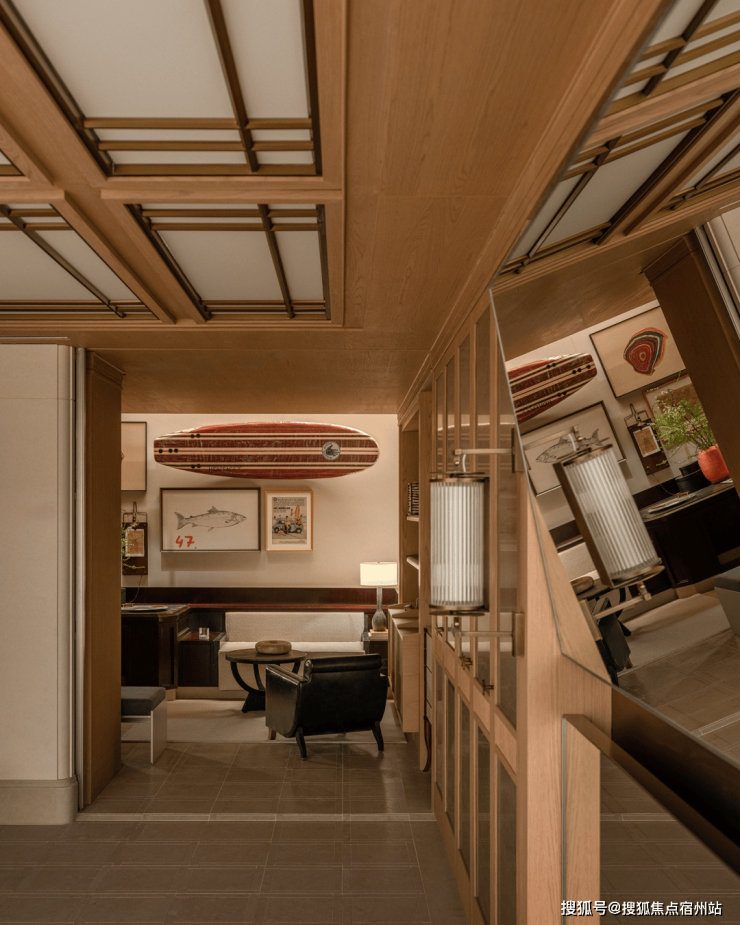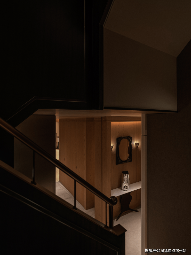 在动线设计上,影音雪茄室取消了独立门扇,书柜处被设置为通道。