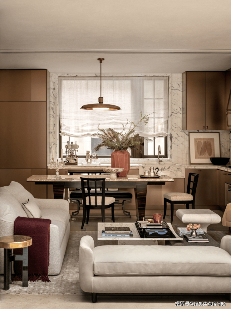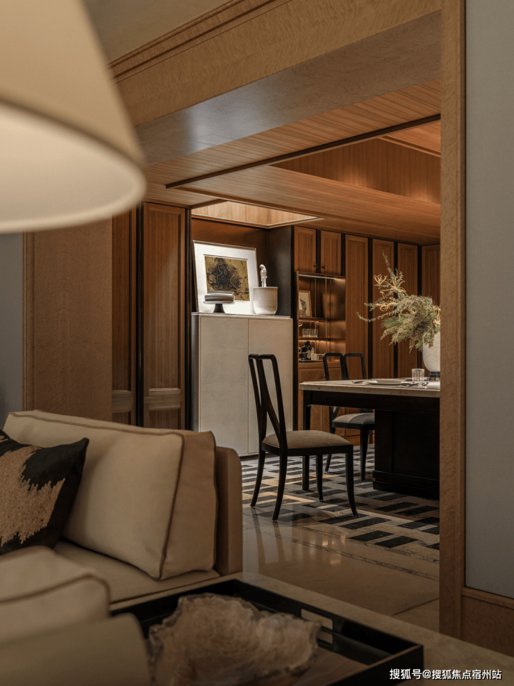 客餐厅之间设置了一道可灵活推拉的隔断门,使相邻的功能空间在闭合的独立性与开放的流动性之间自由转换,适应不同的使用场景与生活时刻。