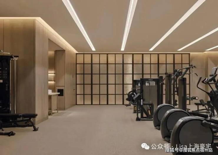 健身房的设计也同样充满了细节。黑框玻璃门的复古韵味,和现代健身空间的功能性做到了完美结合。
