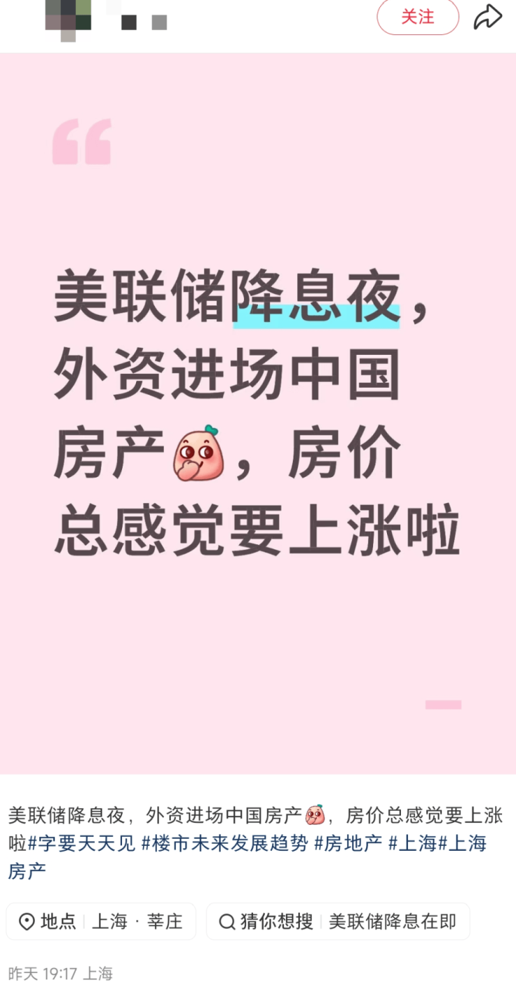 可以看到,我们的市场上不乏“美联储降息,外资进入中国房产”这样的论调——