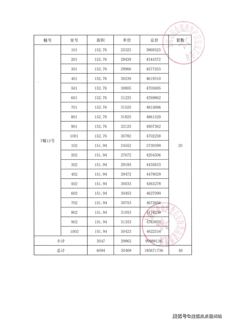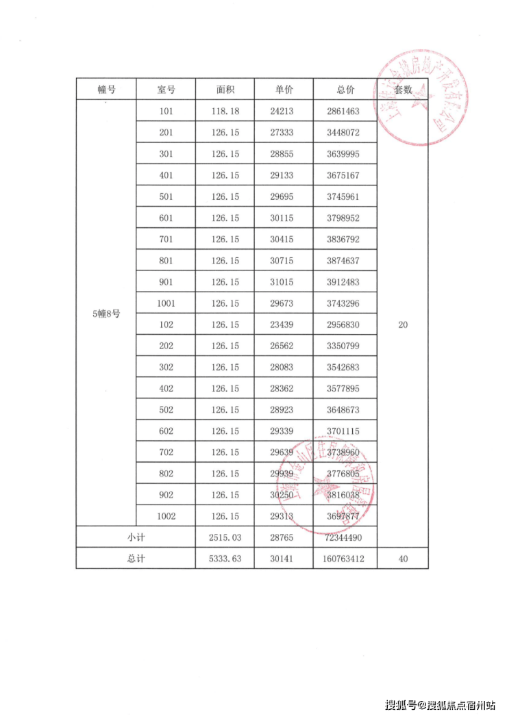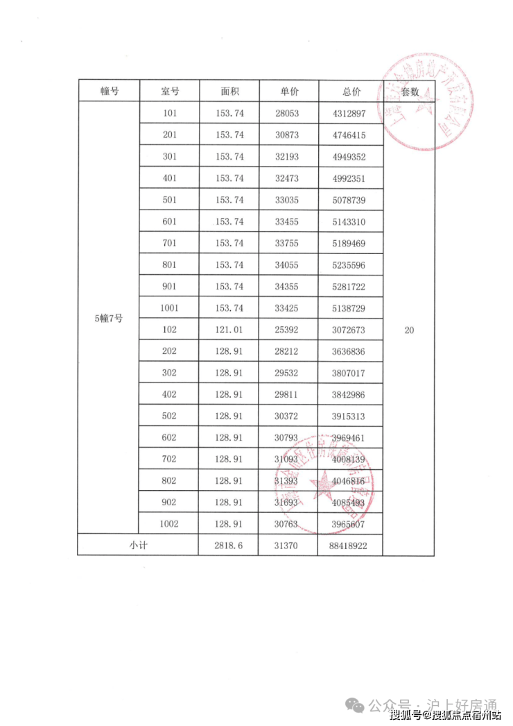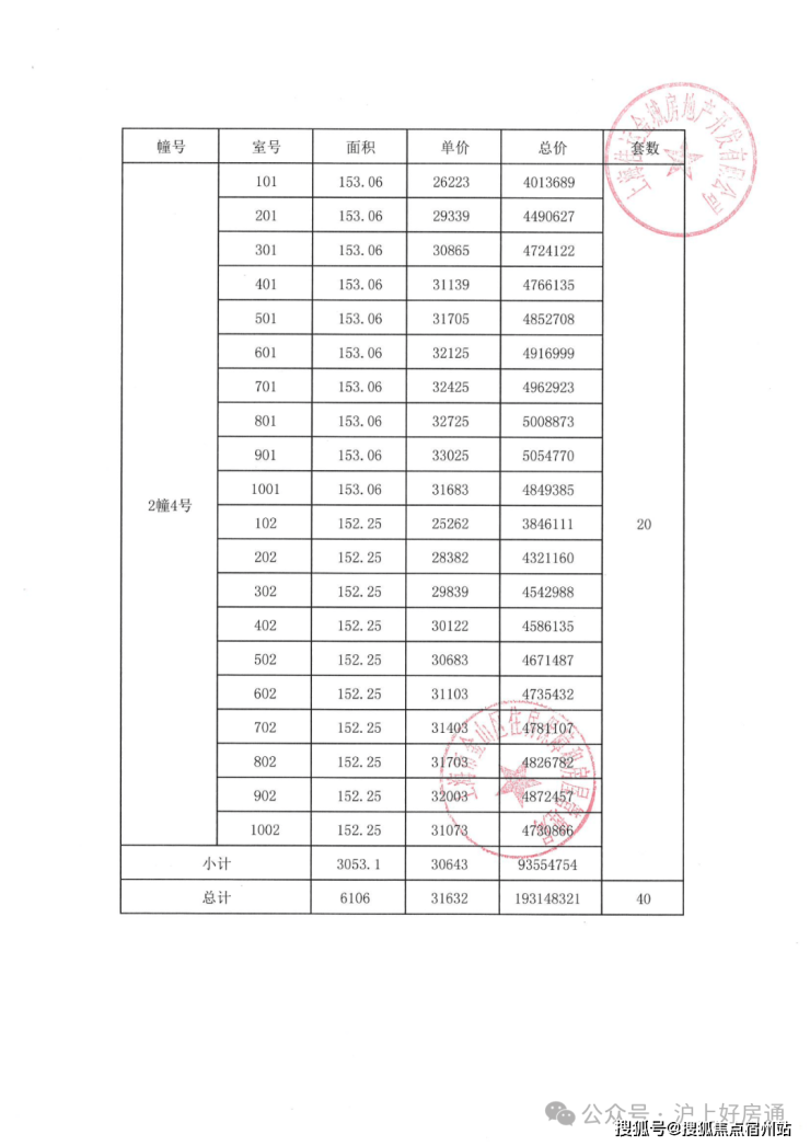 项目一房一价表