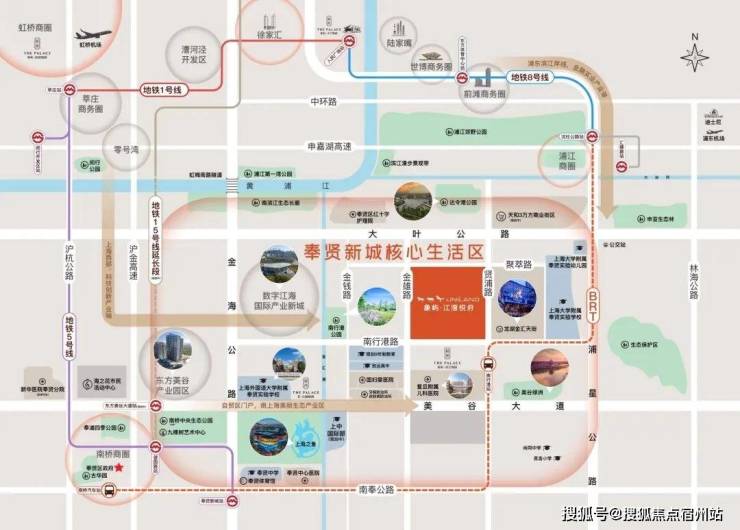 一、滨江南,近市区。金汇离人民广场直线距离仅约28km,对于工作在徐汇、闵行,或者浦东中环附近的人群,通勤便捷,自驾可通过浦星公路接入南北高架路。