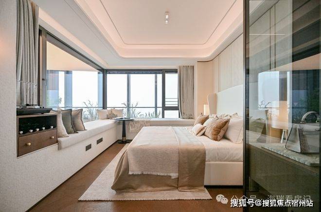 边套主卧三面采光,全屋满飘窗设计,主卧标配270度飘窗,搭配全明通透的卫浴空间,将顶豪的尊崇感渗透到每一个日常的场景。
