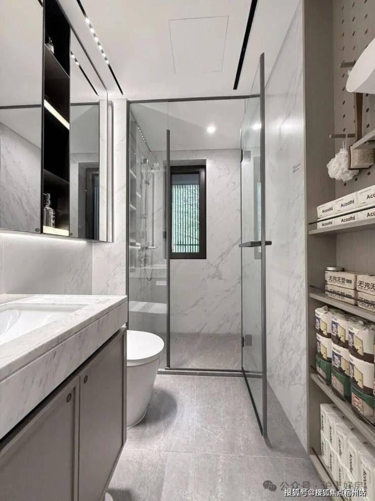 此外,像私享的入户梯厅可以做家庭小型储藏库;沙发后面的空间可以摆放大体量壁柜;大面宽阳台两侧也可作为定制储藏空间;