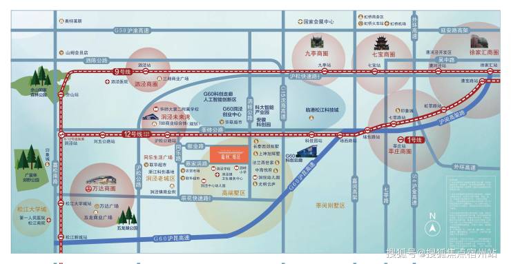 地铁12号线西延伸线的未来通达:项目临近 在建的地铁12号线西延伸线沪松公路站,未来可快速接驳至 七宝、徐家汇等城市核心商圈,实现了“离尘不离城”的理想生活状态。