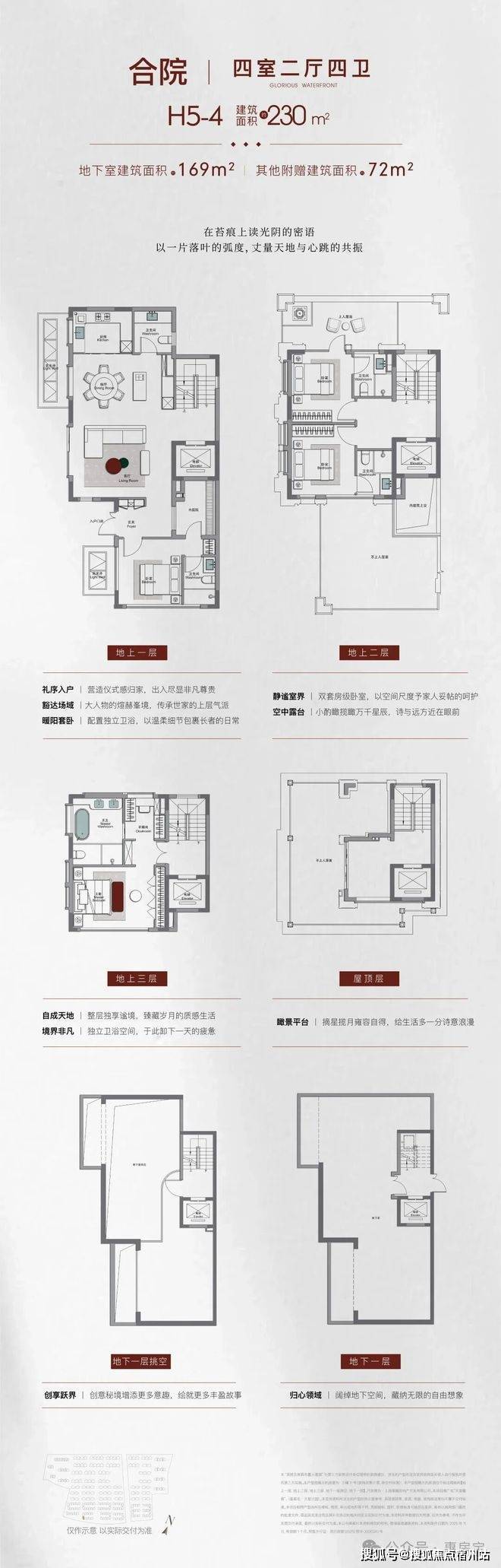 2nd.约210-230㎡法式合院 这才是别墅应有的样子相较于传统别墅,合院产品通过围合庭院,将活动空间从室内延伸至户外,实现从"别墅"到"院墅"的升华,更契合中国人的居住哲学。挑空地下层,可划分为双层空间,实现约169㎡使用空间,与知己相聚,或收藏个人志趣,抑或是作为储藏空间,无限生活尽可想象于此得到满足。其他附赠面积也达到约72㎡,多个空中露台+屋顶瞰景平台,既可以实现城市人卸下喧嚣、沉浸自然的梦想,也可以满足孩子摘星揽月、秘密花园的梦想。约35㎡奢阔客餐双厅,奢阔尺度足以容纳10人的盛宴,让大家族的温馨互动与雅仕层峯的社交宴请于此从容上演。首层套卧,平权主义设计,配置独立卫浴以及内庭院,为家中年长者安置一片安全舒适的私属空间,享受阳光与自然的照拂。整层主卧套间,给予主人一方独立私享的静谧天地,步入式衣帽间内还能安放女主人的梳妆台;足够大尺度的卫浴空间里,大size的按摩浴缸也可轻松安置。四套卧+独立入户门厅+私享电梯+大品牌奢配精装,每一个细节都超越对于别墅的向往!✅✅上海象屿天誉兰香售楼处电话☎:400-833-6309【官网】