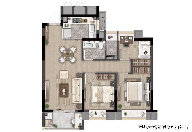 C户型 建面约86-88㎡ 3房2厅1卫