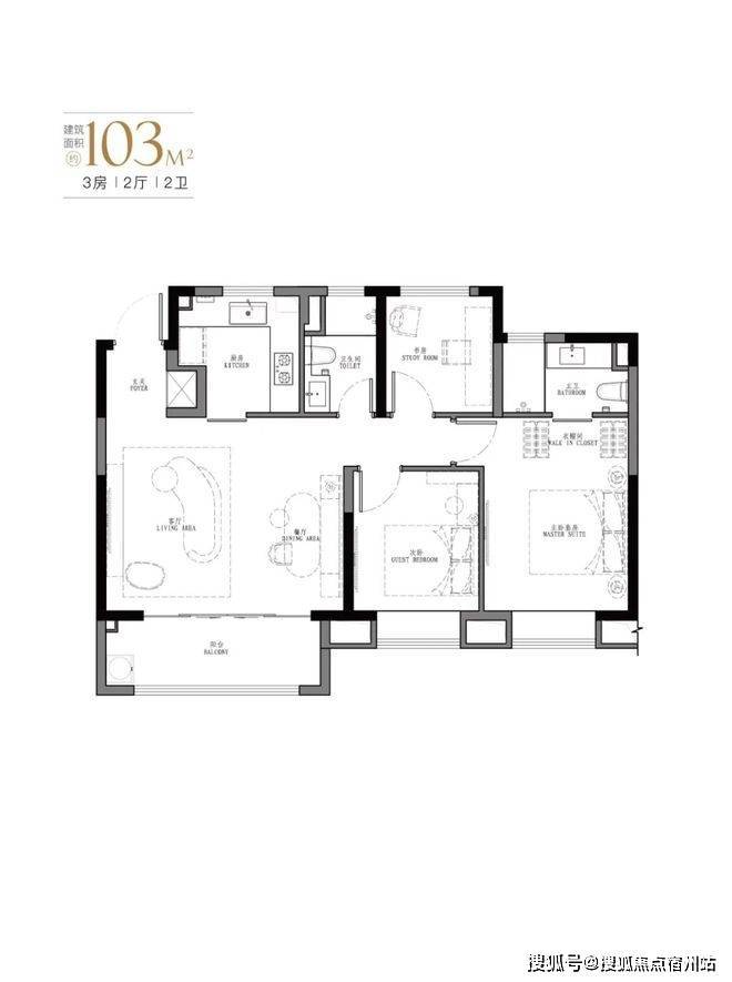 产品:103㎡、107㎡的三房两厅两卫及123㎡、129㎡的四房两厅两卫。
