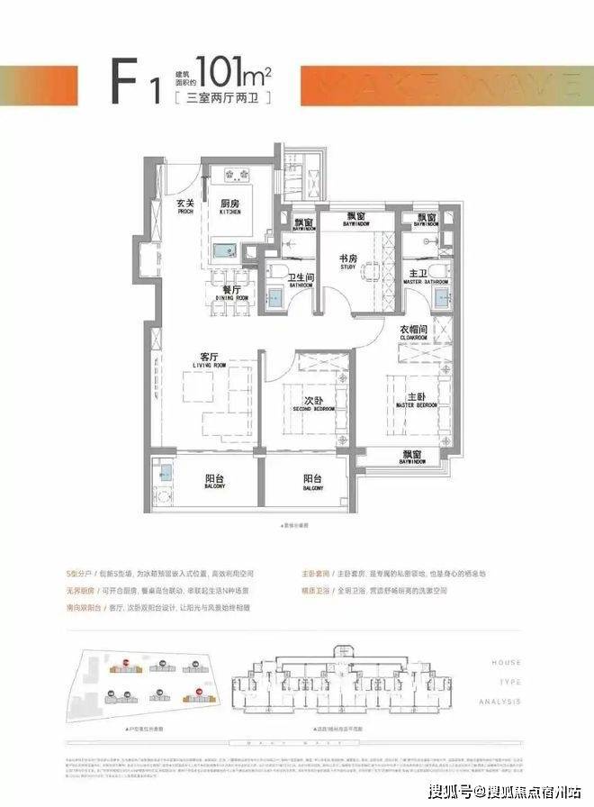 “南向双阳台+南北双飘窗”,构筑真3房户型!