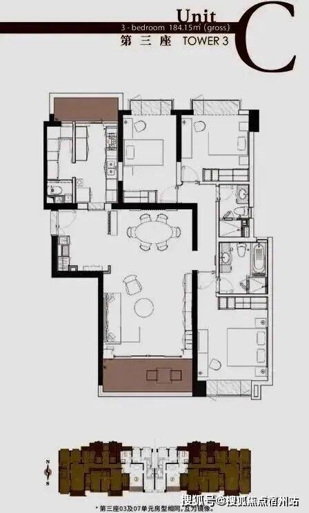 3号楼户型:134㎡2房,184㎡/200㎡3房
