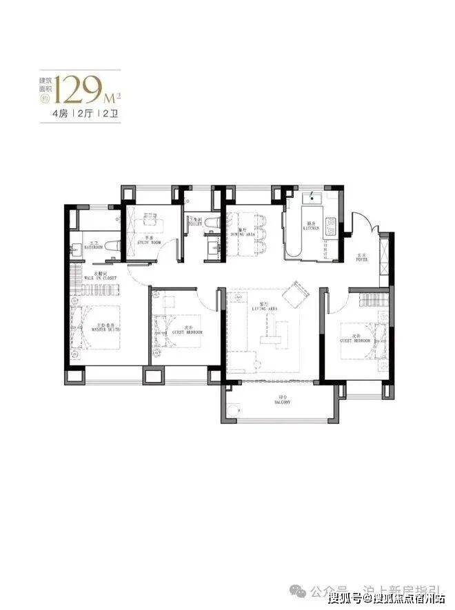 产品:103㎡、107㎡的三房两厅两卫及123㎡、129㎡的四房两厅两卫。