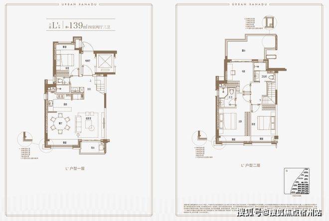 建面约139上叠户型,三层是会客区,四层是居住区,阳台+露台+多个飘窗设计,附加空间非常大,在别墅类产品中实属罕见!
