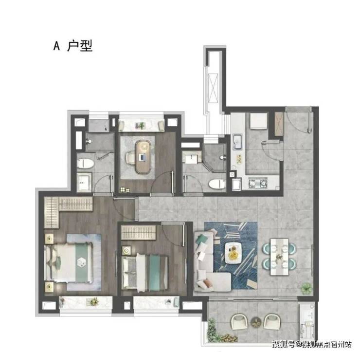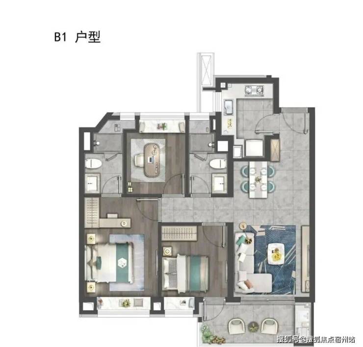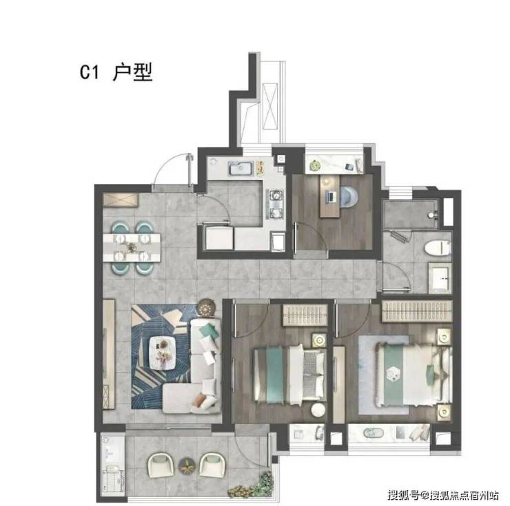 本次加推户型涵盖建面约87㎡三房两厅一卫