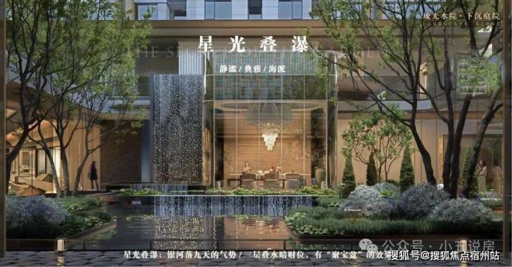 于是你可以看到,结合建筑界面打造城市精品酒店式的入口广场,即 精品街区,以及流觞曲水的 觅隐叠溪,将你从城市拉回自然。