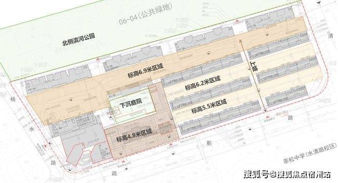 从公示的总图上来看,地块南侧场地标高在4.8米,✅✅安高海印华庭售楼处电话:400 - 882 - 4258✅✅北侧已经到了6.9米,有2.1米的高差。