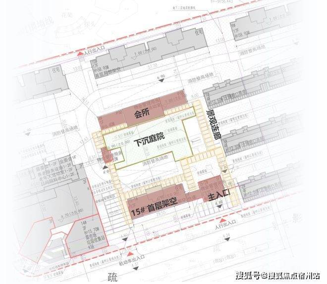 位置放在了南北两栋楼中央,从南侧主入口进入后,✅✅安高海印华庭售楼处电话:400 - 882 - 4258✅✅还需要比较长的步行距离才能达到下沉庭院,与现在常见的主入口直接连着会所的形式不太一样。