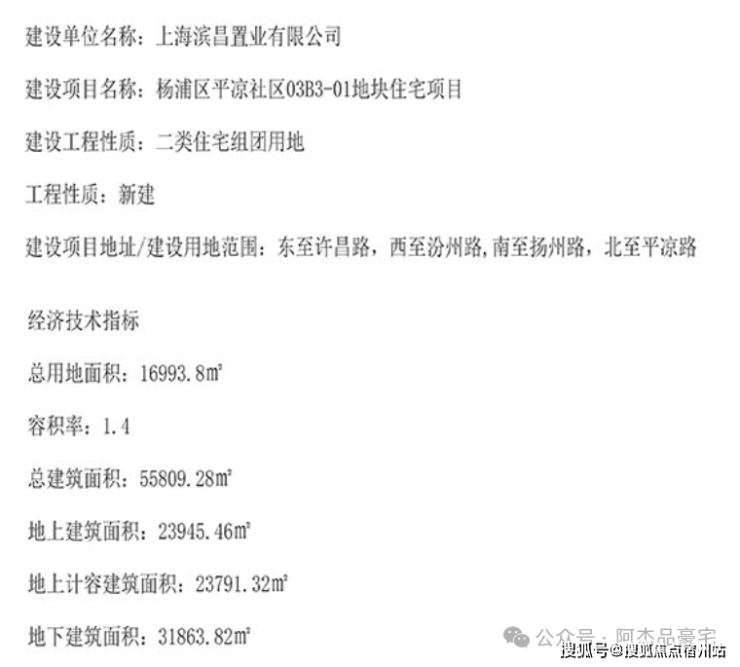 该地块建设用地面积16993.8平方米,规划用途为二类组团住宅用地,容积率 1.4,地上计容建筑面积为23791.32平方米。实施主体为上海房睿置业有限公司(60%)、上海杨树浦置业有限公司(40%)。