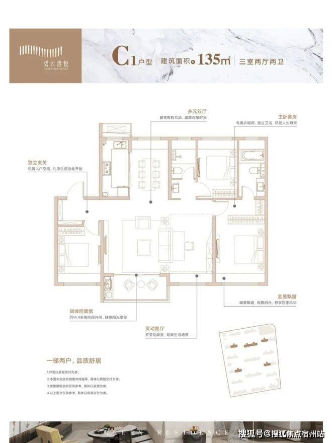 卫 生 间:台盆柜、镜面柜、杜拉维特马桶、汉斯格雅花洒(具体交付标准以预售合同为准)